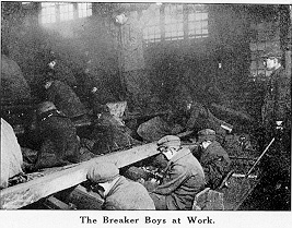 long chutes, at which the breaker boys sat. These boys picked out the pieces