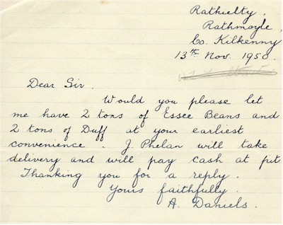 Letter from Kilkenny Customer 1950 looking for Beans & Duff